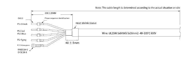 The system needs a three-phase AC input (380-415V, 50-60Hz) with 80A current capacity. Connect a three-phase, five-wire (L1+L2+L3+N+PE) power cable from your power source to the control box. Run an Ethernet cable (Cat.5e-FTP recommended) with RJ45 connector through the top inlet to the P1 port on the internal switch.