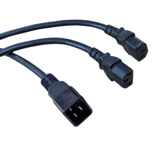 Power Extension Cable C20 Male Plug to IEC Y SPLIT 2 x 0.5m C13 Female legs 2m